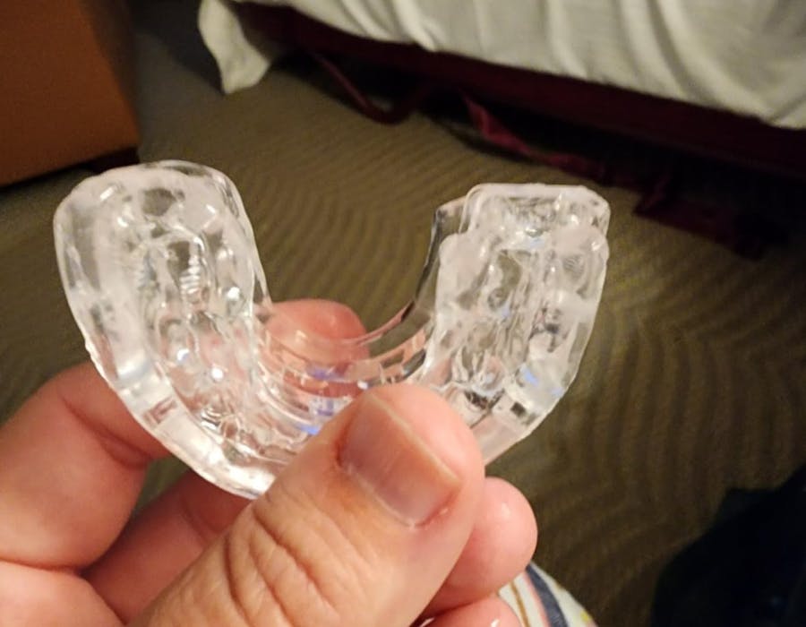 הוא מאפשר לך לפתוח ולסגור את הפה, ניתן להתאים אותו בקלות לשיניים שלך והוא עשוי מחומר רך עם קצוות מעוגלים, כך שהוא כמעט בלתי מורגש!