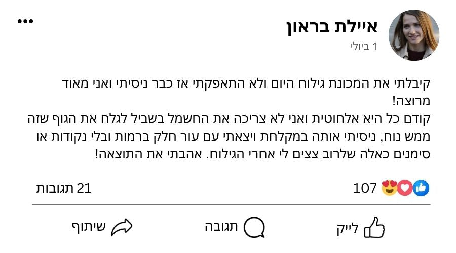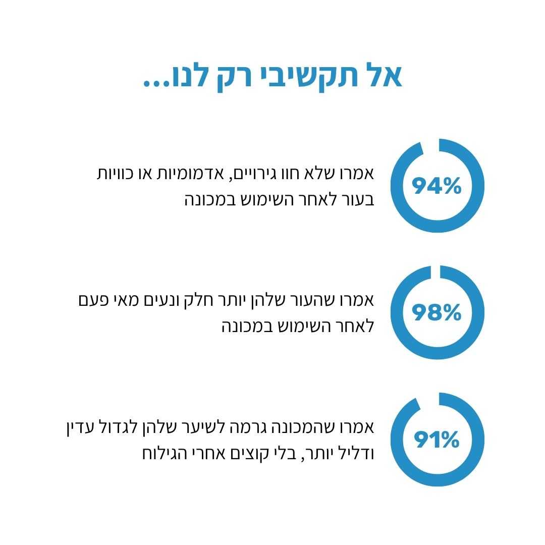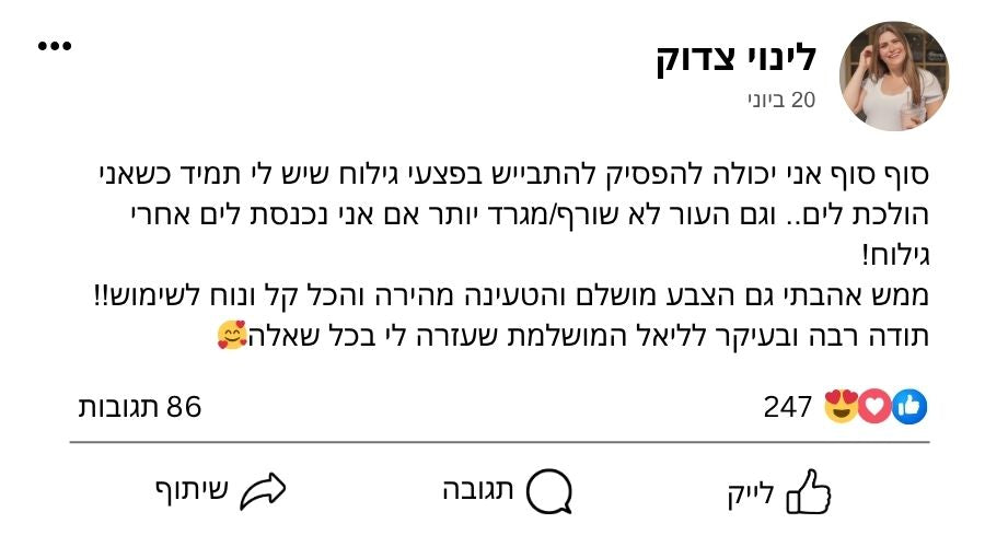 אנחנו כל כך בטוחים במוצרים שלנו ועומדים מאחורי האיכות והתוצאות שלהם שאם את לא מרוצה בדרך כלשהי במהלך 30 הימים הראשונים, פני אלינו וקבלי החזר כספי מלא!