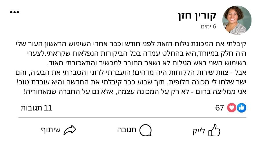 אנחנו עומדים מאחורי איכות המוצרים שלנו ולכן אנחנו מציעים לכם תקופת ניסיון של 30 יום!