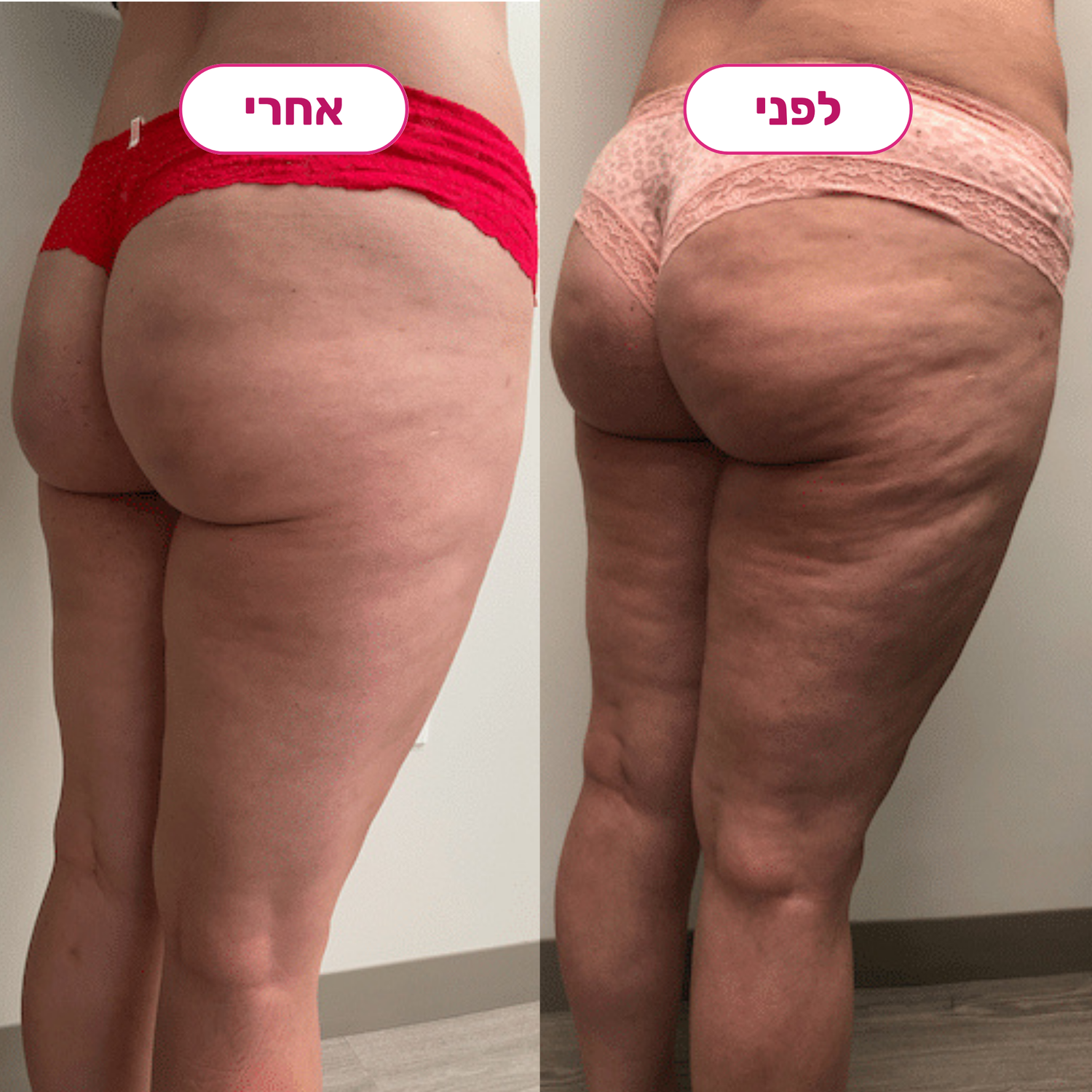 ממש הופתעתי מהתוצאות של המכשיר הזה!! כי באמת ניסיתי כבר הכל והתאכזבתי המון פעמים, אבל הפעם הצלוליט שהיה לי בירכיים ממש נעלם!! העור נראה הרבה יותר חלק ובקיצור איזה כיף שמצאתי אותכם💕